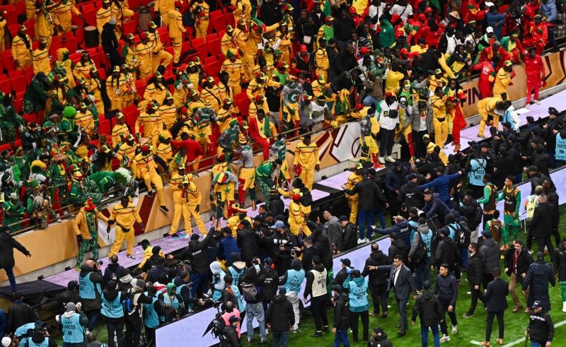 As most of their players walked off the pitch, some Senegal supporters in the small section of away fans at the opposite end of the stadium threw chairs and other objects and attempted to get onto the field of play.