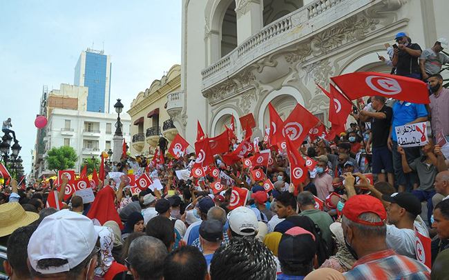 THOUSANDS of Tunisians have gathered in central Tunis in defiance of an official ban on their protest against President Kais Saied, calling for him to release detained critics and retract his controversial remarks on migrants.